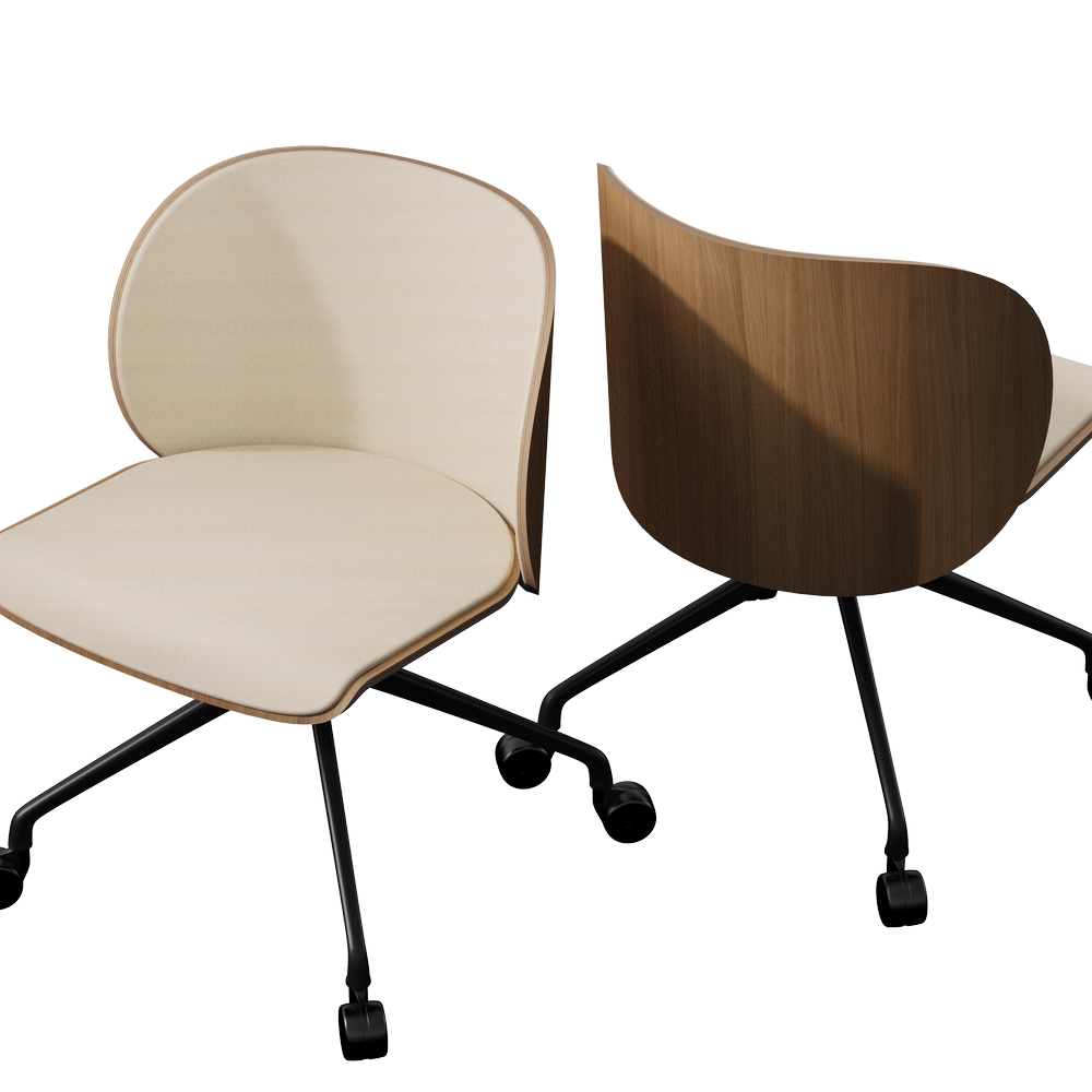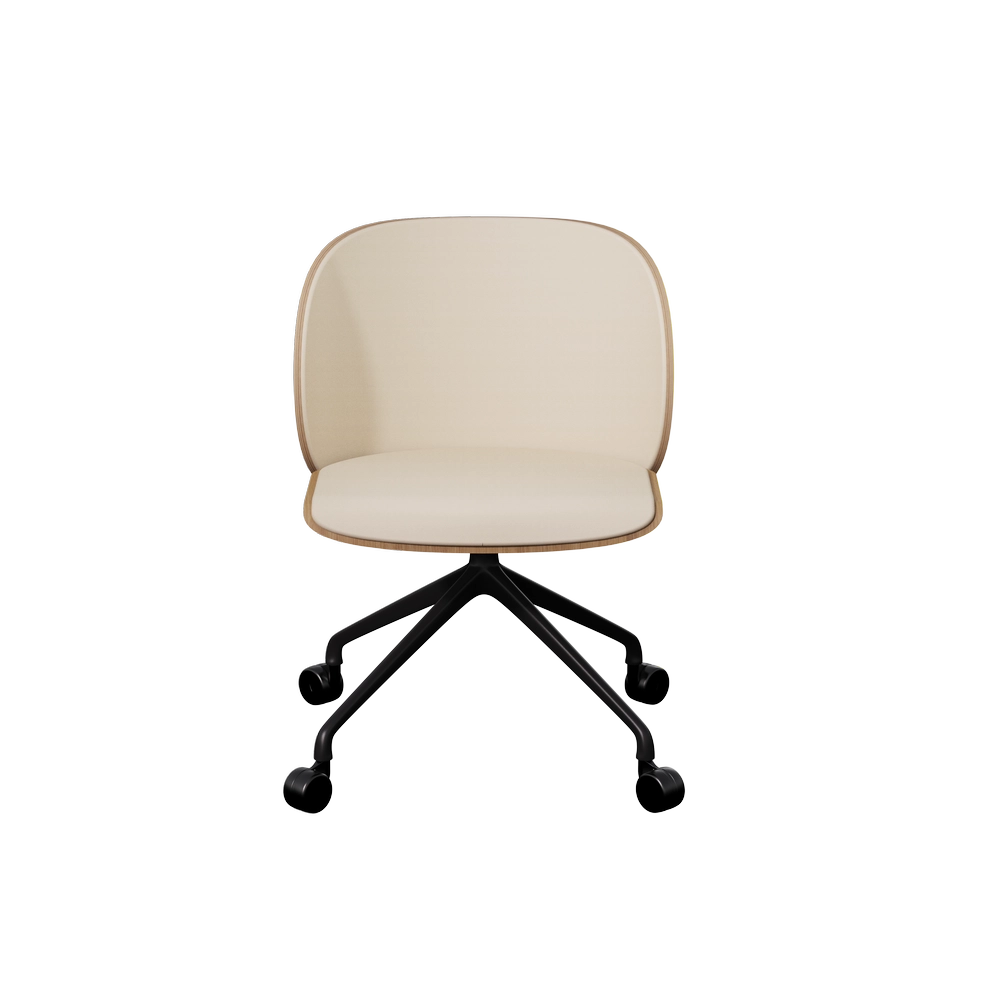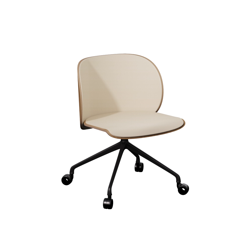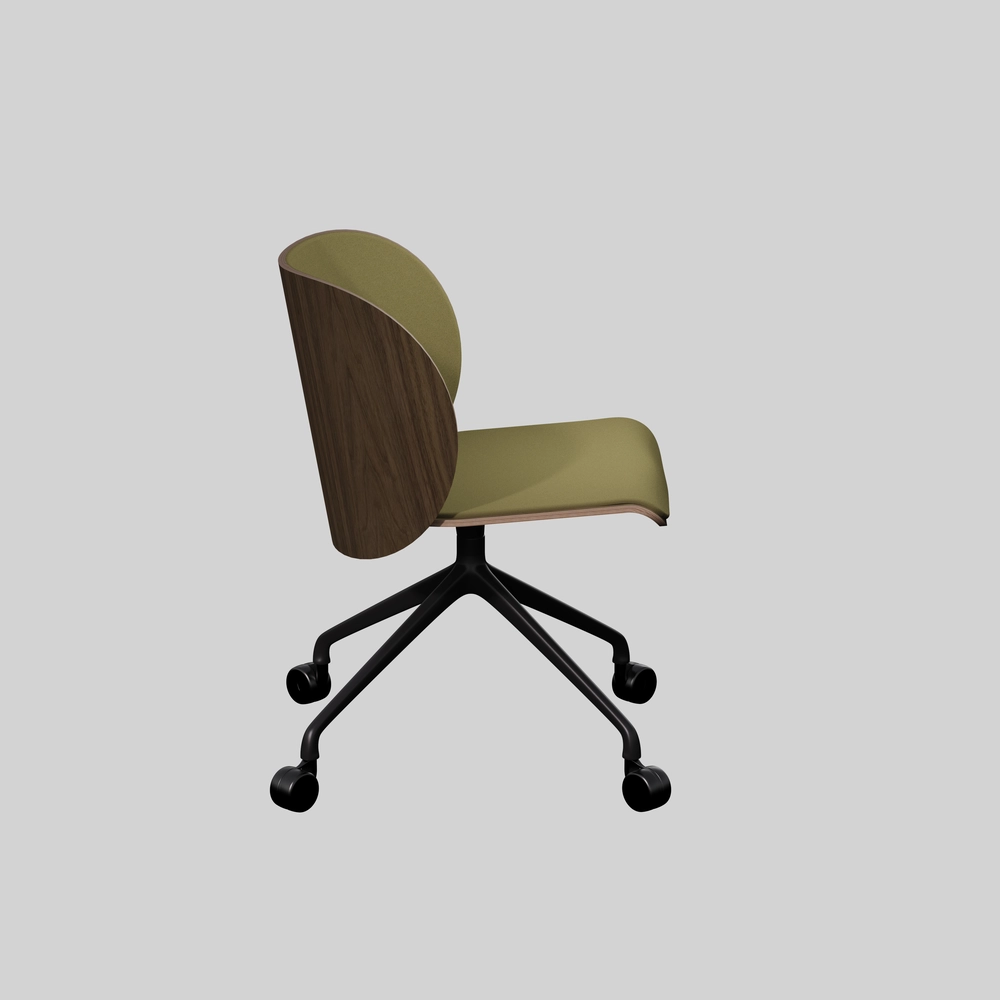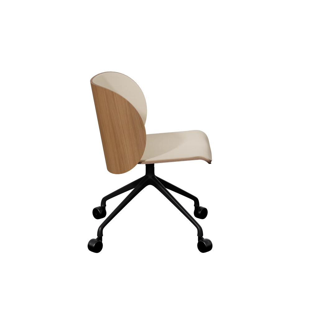 Elle apporte du bois et du confort à votre intérieur. Elle existe avec ou sans accoudoir et en 3 piétements différents : bois, roulette ou pivotant métal.