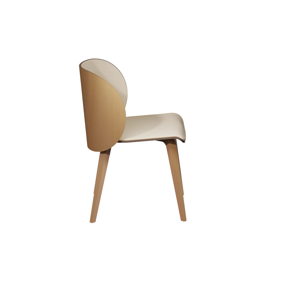 Elle apporte du bois et du confort à votre intérieur. Elle existe avec ou sans accoudoir et en 3 piétements différents : bois, roulette ou pivotant métal.